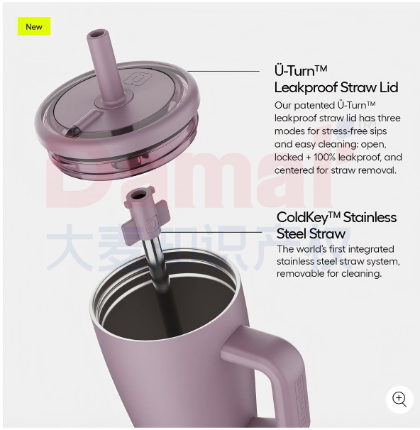 BruMate是一家从美国市场兴起的、主打创新和社交营销的饮品器具品牌,约2016年,始于创始人的大学宿舍创意,Era系列防漏吸管杯,正是其拓展居家、办公、通勤场景的重要产品,并申请了核心专利进行保护。