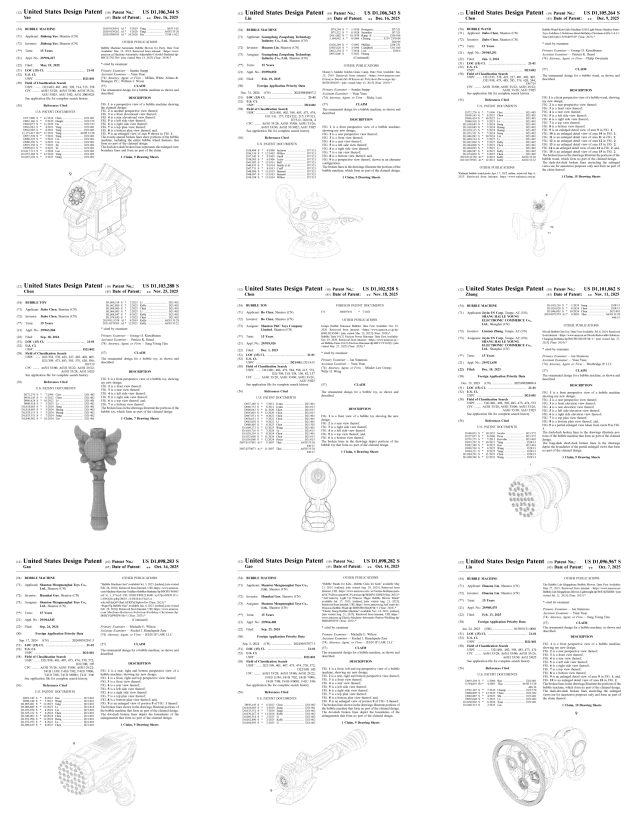玩具产品市场前景广阔,卖家若想分一杯羹,务必要留意专利侵权风险。除泡泡玩具外,还有很多热销产品已布局外观专利: