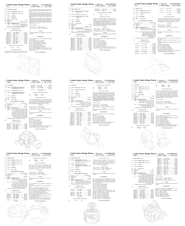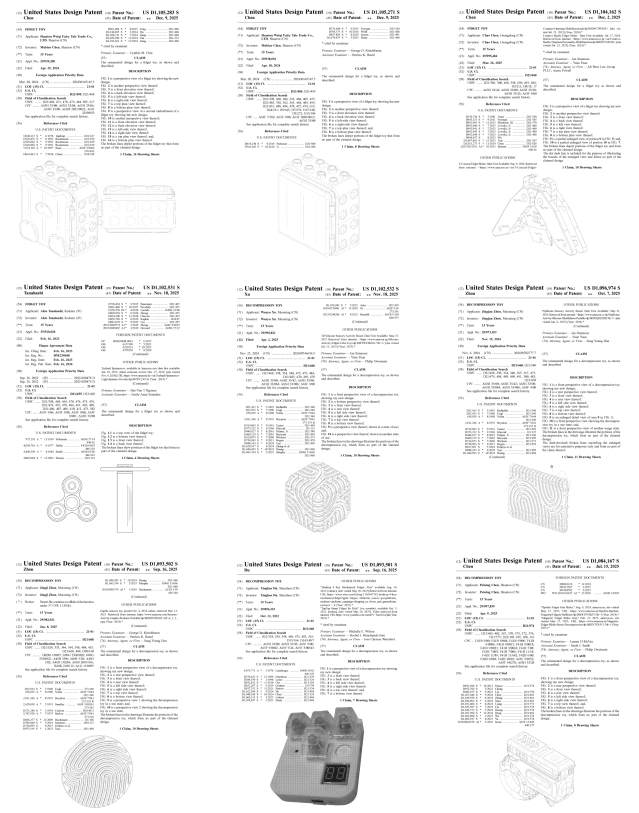 今年下证的益智玩具美国外观专利不亚于泡泡玩具,建议大家做好排查,切勿销售与他人专利高度相似的产品: