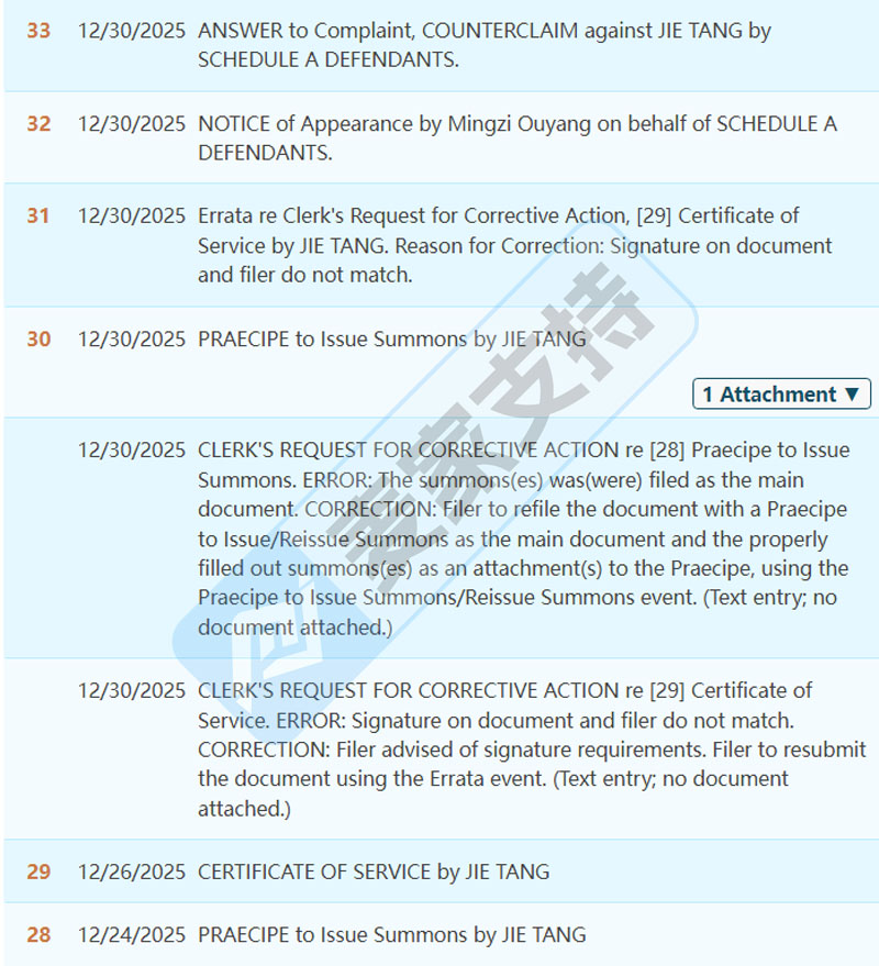 本案是Aptum Law代理国人卖家JIE TANG在宾夕法尼亚州西区法院发起的版权维权案件,并于2025年12月12日获批了法院签署的TRO临时限制令,涉案账户资金已被冻结!涉案版权为2幅橄榄球场的设计图案,被广泛用于服装印花图案,跨境卖家在选品时需注意规避,避免TRO冻结风险!