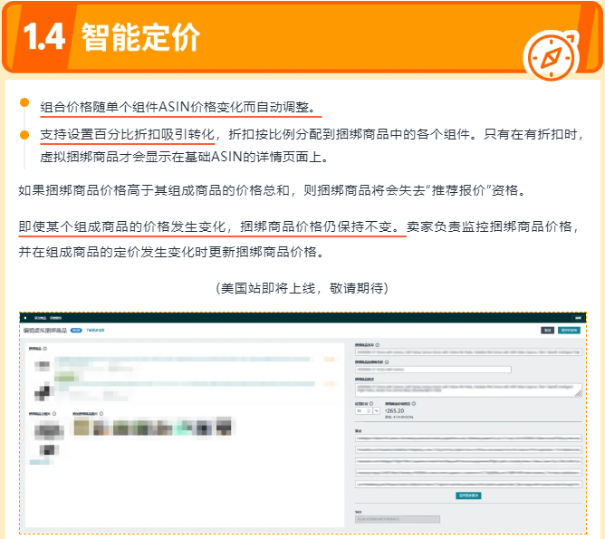 通过卖家平台,卖家现在可以创建由2-5个ASIN组成的虚拟捆绑商品,在基础商品详情页面上自动展示捆绑商品,为客户提供多件商品折扣,并对虚拟捆绑商品投放商品推广广告。