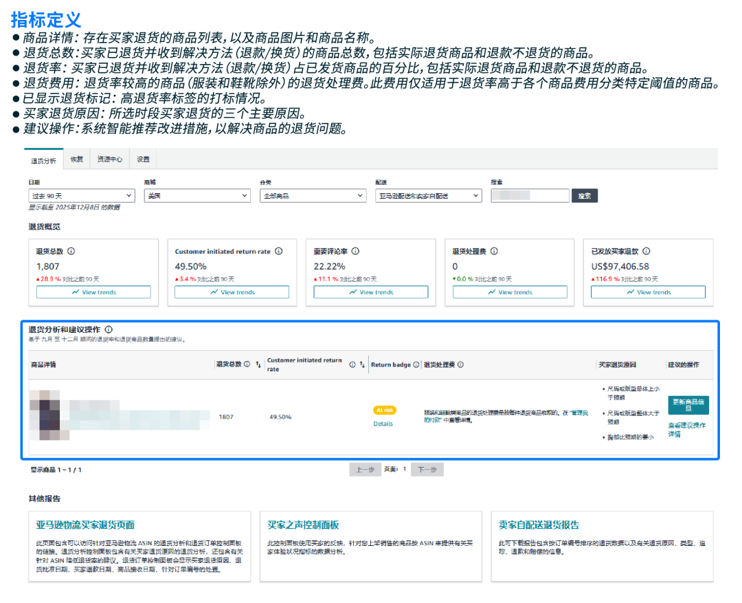 卖家平台路径:订单>退货与价值回收>洞察与机遇