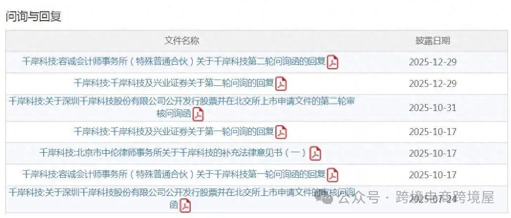 正在冲击北交所上市深圳跨境大卖千岸科技,对北交所第二轮审核问询函进行了回复,回应了刷单、毛利率波动、供应商利益输送、募投项目合理性等问题。