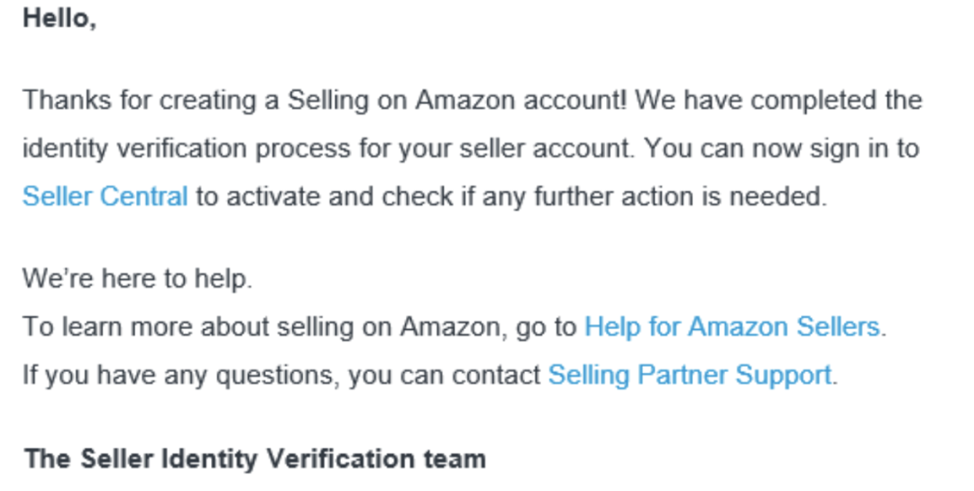 若您收到邮件告知“您的帐户信息已经通过验证,现在您可以登陆卖家平台进行后续操作”则表示您已经成功完成亚马逊卖家账户资质审核!