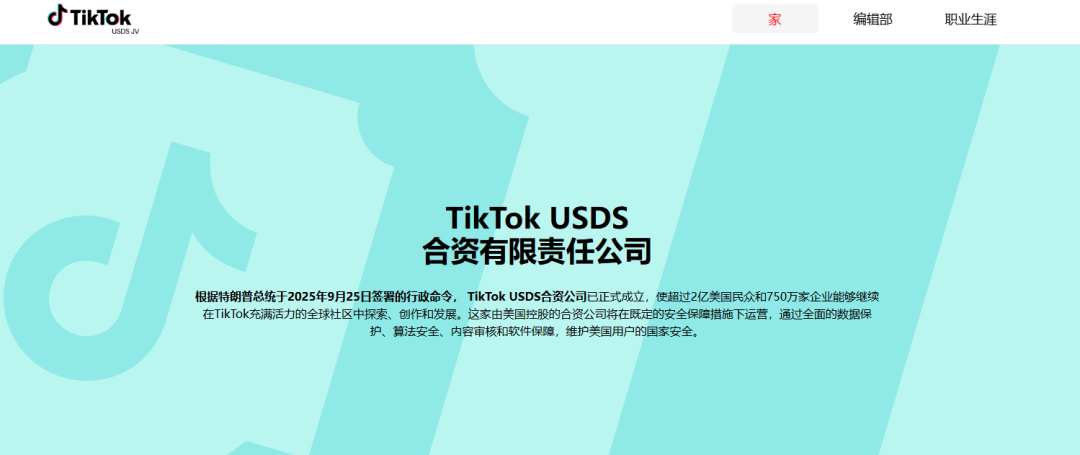去年12月18日,TikTok CEO周受资发出内部信称,字节跳动、TikTok已与三家投资者签署协议,并将成立新的TikTok美国合资公司。新合资公司将负责美国的数据保护、算法安全、内容审核和软件保障。由字节跳动全资控股的、TikTok在美国的其他实体,将继续负责电商、广告、市场运营等商业活动,以及TikTok产品的全球互联互通。