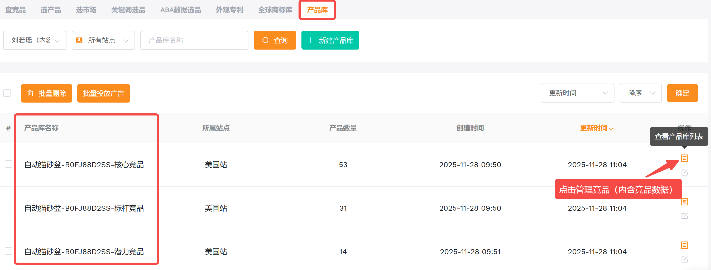 通过卖家精灵【产品库】进行统一管理,你可以随时查看、筛选、增删竞品。
