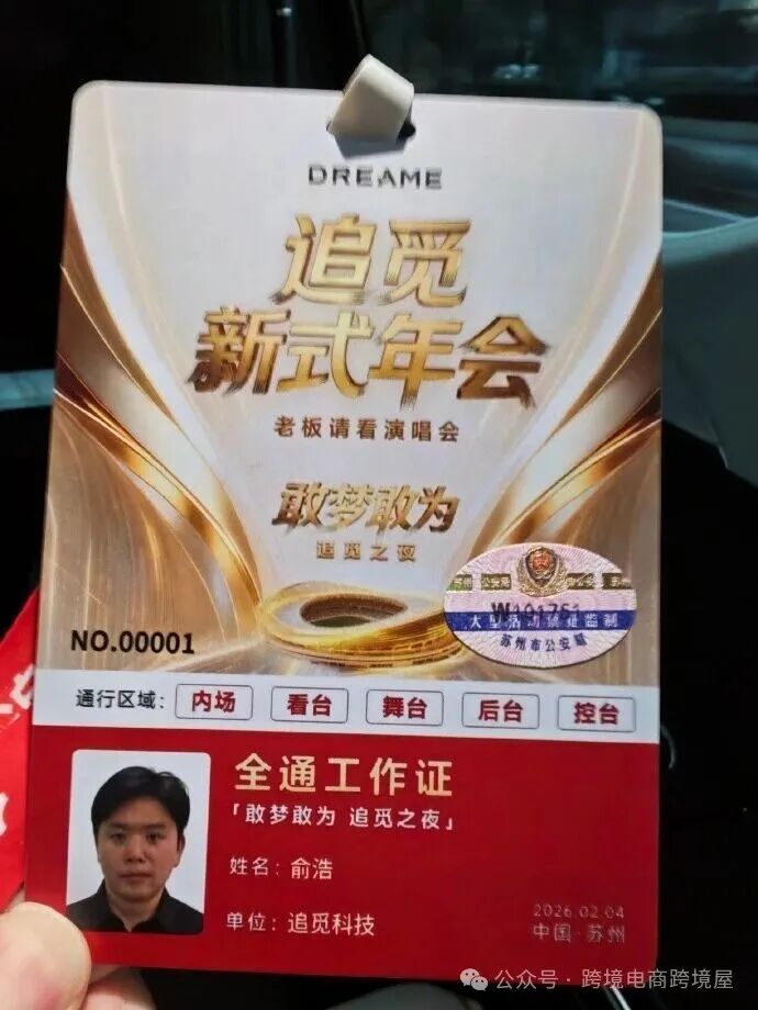 这次年会,除了追觅的员工,不少合作伙伴都收到了邀请参加。老板俞浩还专门晒了自己的0001号年会门票。