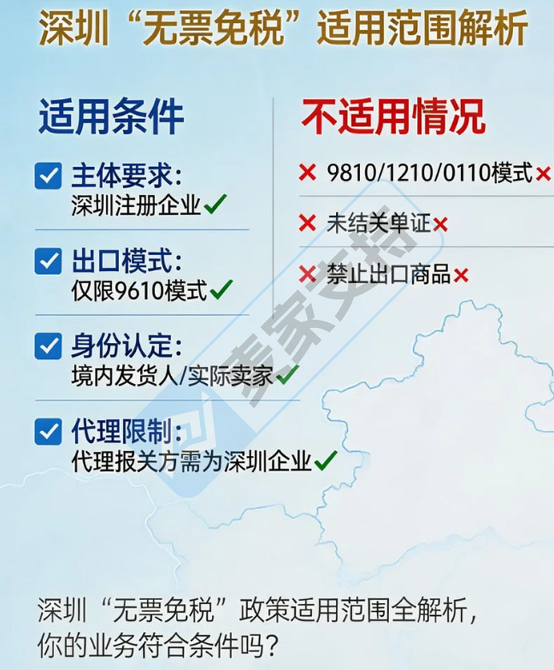 麦家支持提醒:政策仅覆盖深圳综试区注册企业,且仅限9610零售出口模式(9810海外仓、1210保税贸易等不适用)。