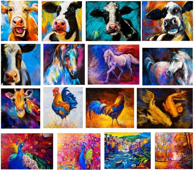 109家店铺被起诉冻结,共涉及27张牛、马、鸡等动物及风景版权画: