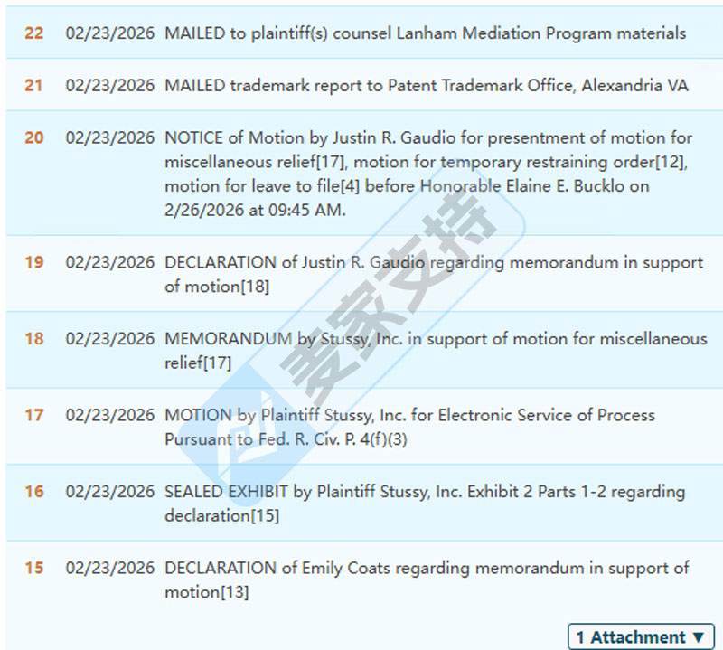 2026年2月20日,美国潮牌Stussy, Inc. 通过GBC律所向伊利诺伊州联邦法院提起商标侵权诉讼,并同步申请TRO临时限制令,要求冻结涉案跨境店铺资金。此次维权行动直指未经授权使用Stussy标志性商标的卖家,涉及服装、鞋履、背包、配饰等全品类商品。目前该案件暂未获批TRO临时限制令,跨境卖家需尽快排查并下架高危链接,关注我们可实时跟进案件后续进展。