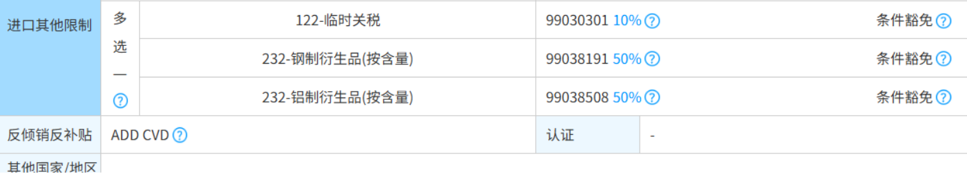 最终关税 = 基础税率 + 25%或50% (232关税)