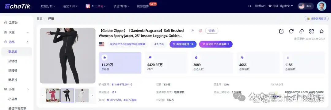 另外,随着“春季战役”进入白热化阶段,TikTok美区的运动服饰赛道,已经从单品爆发走向多点开花。热销的不止是女士瑜伽服。