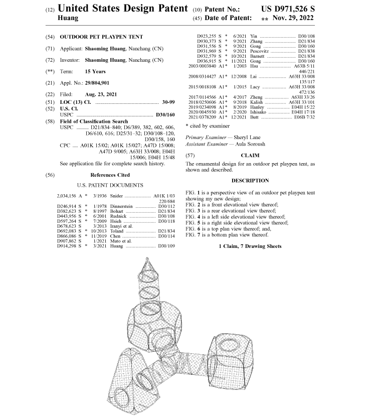 涉案专利包括两件美国外观专利及一件发明专利,专利号分别为USD971526S、USD982853S、US11939786B1,也就是说从产品外观到设计原理结构均受保护,极易踩雷,有卖相关产品的卖家务必仔细排查: