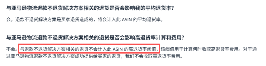 值得卖家注意的是,仅退货的ASIN不会影响高退货率阈值。