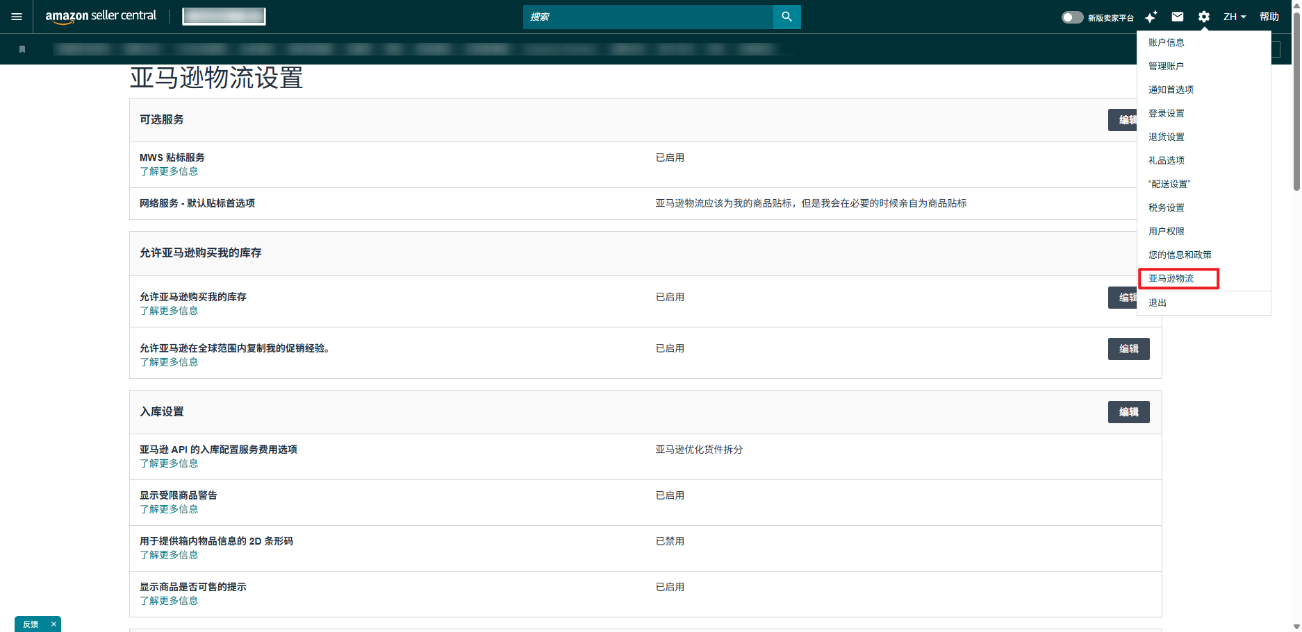 路径:卖家后台 → 右上角「设置」 → 亚马逊物流 → 亚马逊物流退货评估和所有权设置