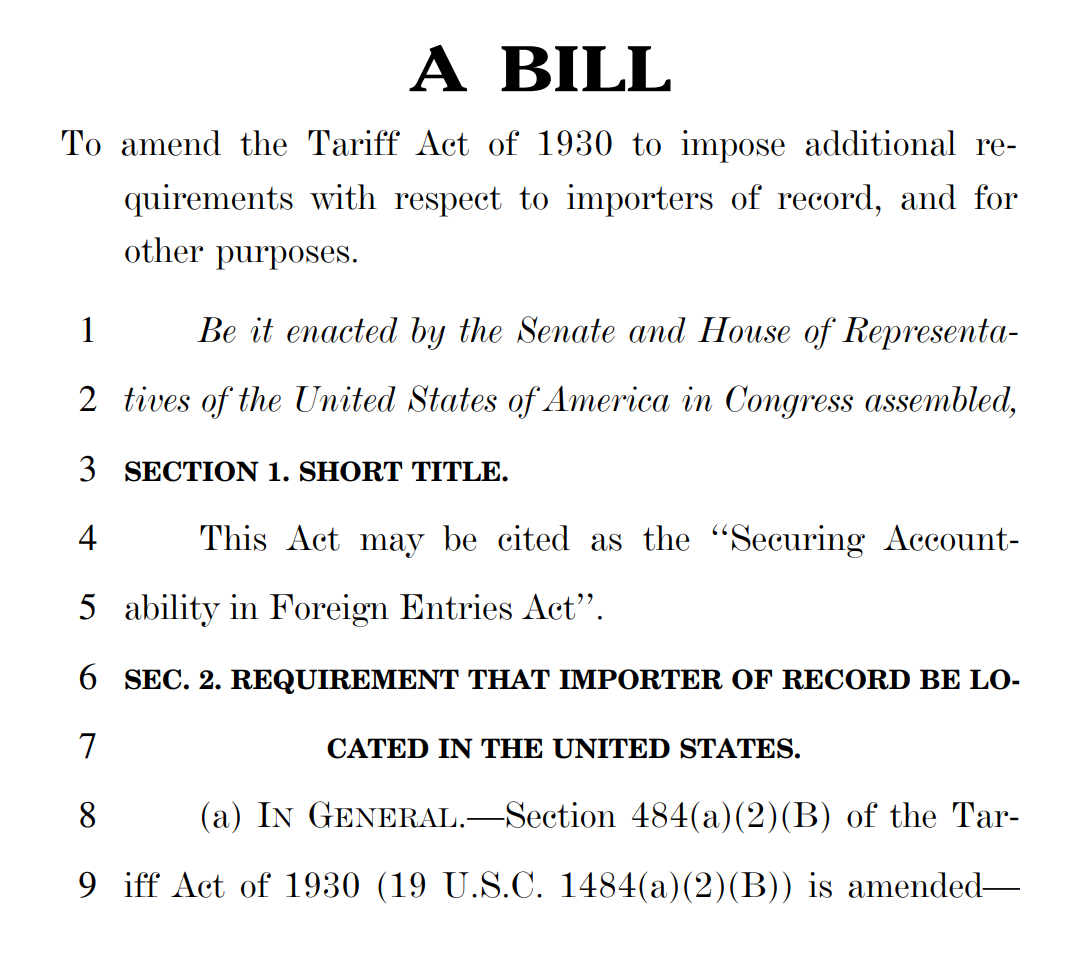 公开文件显示,该法案对于进口商的主体资格、关税支付流程、进口保证金提出了多项要求。