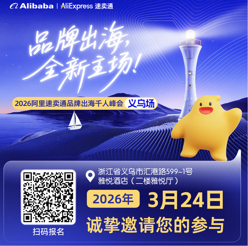同时,据AMZ123最新调研显示,87%的亚马逊卖家计划将速卖通作为品牌出海的第二增长曲线。2025年,速卖通全面升级了“超级品牌出海计划”,明确提出以亚马逊一半成本,为品牌带来全新增量,过去一年来,速卖通已吸引小米、泡泡玛特、倍思、荣耀、努比亚等大量中高端品牌加速入驻。3月24日,速卖通品牌出海千人峰会还将落地义乌招商,感兴趣的商家可以抓紧扫描下方二维码报名。