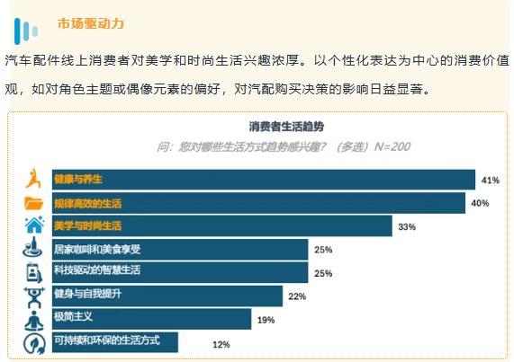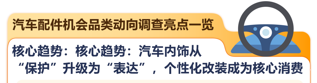 对许多日本消费者而言,汽车已从一个单纯的代步工具,升级为每天度过数小时的“移动第三空间”。随着短途出行增加,消费者愈发愿意为提升车内环境的舒适、美观与清洁投资,推动防晒装备、个性化内饰等品类飞速增长。预计到 2033 年日本汽车配件市场规模将达到 144.6 亿美元,日本被认为是亚太地区增长最快的市场。按细分领域来看内饰配件(座椅套、脚垫、收纳用品)成为市场规模最大的产品类别。