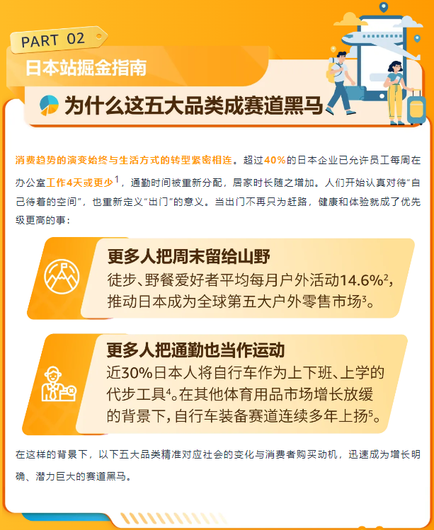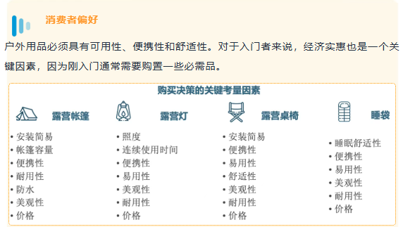 在日本,人们参与户外活动的主要原因是渴望感受和亲近自然,其次是希望摆脱日常生活的节奏。预计到 2030 年,日本露营市场的用户数量将达到 1247 万。消费者不再追求负重越野,而是青睐颜值在线、轻便易携、易于分享的装备。这让轻量化帐篷、复古露营椅、便携炊具等兼具功能与格调的品类,迅速成为社交与生活的热门之选。预计到2026年,日本户外用品市场销售收入将达到约4937.4亿日元。