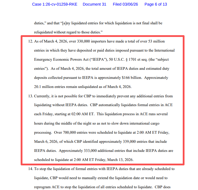 近期,美国贸易政策连续释放出两大信号:一方面,美国海关宣布将于4月开始启动退税安排;另一方面,美国政府重启“301调查”,并将中国、欧盟、日本等在内的16个国家和地区纳入调查范围。两项政策几乎在同一时间出现,使得跨境电商行业再次感受到政策环境的复杂与多变,对于依赖美国市场的跨境卖家而言,也意味着新的不确定性正在酝酿。 对于数万名苦等一年之久的美国进口商(卖家)来说,今年4月将是一个具有历史意义的转折点。 由于此前美国最高法院对《国际紧急经济权力法》(IEEPA)项下加征关税的违宪认定,美国海关与边境保护局(CBP)终于迫于法律压力,敲定了退税时间表。自4月中下旬起,海关ACE系统将正式开启自动化重新清算模块。 截图:CBP法庭文件 根据美国海关提交给法院的文件,截至2026年3月初,已有超过33万家进口商在相关政策下缴纳关税,总计产生超过5300万票进口报关记录,累计金额约1660亿美元。这些关税主要针对从中国等地进口的商品,影响了众多跨境电商平台上的卖家,如亚马逊、eBay和Shopify上的中小型出口商。 截图:路透社 CBP 表示,由于退税量级巨大,需在 ACE 系统中新增退税模块,预计将在 45 天内上线。新的流程将允许企业通过在线门户提交退款申请或确认信息,系统自动核算退款金额并一次性发放。 据悉,美国联邦贸易法官已批准推迟立即退款,以避免系统崩溃。这意味着4月启动后,退税将分批发放,优先处理已注册用户。然而,据路透社报道,截至 3 月初,在符合退款资格的33万家进口商中,目前只有约2.1万家完成电子退款注册,这意味着大量卖家仍需完成账户设置才能顺利领取退税。 对于跨境卖家而言,眼下的头等大事是尽快核对过去两年的进口申报信息,确保资料完整,包括 HS 编码是否一致、IOR 是否正确归属、报关行信息是否完整、条目是否处于未清算(unliquidated)状态、是否存在已最终结案(final)的条目等,都将直接影响退款速度。对于使用代理清关的卖家,尤其需要与货代确认是否在退税名单中,以及退款将如何归属。 业内普遍预计,CBP 可能将在 4 月公布更详细的退税流程,包括退款顺序、到账方式、异常条目处理机制、是否允许申诉等执行细则,建议卖家实时关注政策落地进度,确保及时参与退税流程。 就在退税政策逐步落地的同时,美国政府另一份贸易政策公告给全球跨境贸易市场蒙上了阴影,其重启的301调查不仅覆盖范围广,且针对性极强,与退税政策形成的政策反差,让跨境电商行业的发展不确定性进一步加剧。 当地时间3月11日,美国贸易代表办公室正式宣布,依据《1974年贸易法》第301条款,对包括中国、欧盟、日本、韩国、印度、墨西哥等在内的16个主要贸易伙伴发起新一轮“301调查”。 据悉,此次301调查的启动,同样源于此前美国最高法院裁定其“对等关税”政策违宪,美方转而以301条款作为替代工具,依据该法第122条款加征为期150天、税率10%的临时关税,作为调查期间的过渡措施。 美方声称,被调查国家通过政府补贴等方式让低价商品充斥全球市场,损害美国生产商利益,调查完成后可能出台新的关税措施,预计今年夏季前将对部分经济体实施新关税,整个调查进程呈现“时间紧、范围广、针对性强”的特点。 目前来看,此次调查最直接的影响,便是政策不确定性大幅增加,跨境卖家的合规风险持续攀升。 301调查本质上是美国单边贸易保护工具,调查过程中政策调整具有较强的随机性,且美方对“不合理贸易做法”的界定具有主观性,可能随时扩大调查范围、调整审查标准,导致卖家的货物在清关时面临更严苛的查验,如对原产地证明、生产流程记录等合规文件的要求进一步提高,若未能及时适配政策变化,可能面临货物被扣、罚款甚至禁止入境等风险。 因此,面对政策不确定性上升,跨境卖家需要提前做好风险应对。首先,可以抓住退税政策带来的现金流改善机会,加速资金回笼,缓解运营资金压力。其次,持续优化产品结构,减少高风险品类占比,提升抗风险能力。 更为关键的是,建议卖家对301调查的潜在影响进行全面评估,制定针对性应对预案。市场层面上,务必降低对单一市场的依赖,积极拓展欧洲、东南亚、中东等新兴市场,实现市场多元化布局;供应链上,则需要分散原材料采购渠道,优化生产基地与物流路线,构建更加灵活、稳定的供应链体系。