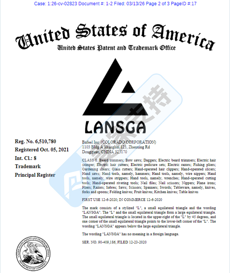 本案是Alioth Law LLP代理Bafeel Inc.发起的商标维权案件,涉案品牌为LANSGA园艺工具,值得注意的是该品牌早于25年9月就曾在德克萨斯州发起过维权,且有249个亚马逊店铺涉案!本次原告转移阵地到伊利诺伊州,针对157个亚马逊店铺未经授权使用其商标的侵权行为发起维权,有销售相关产品的卖家需尽快排查,并下架高危链接,避免TRO冻结后造成的一系列损失!
