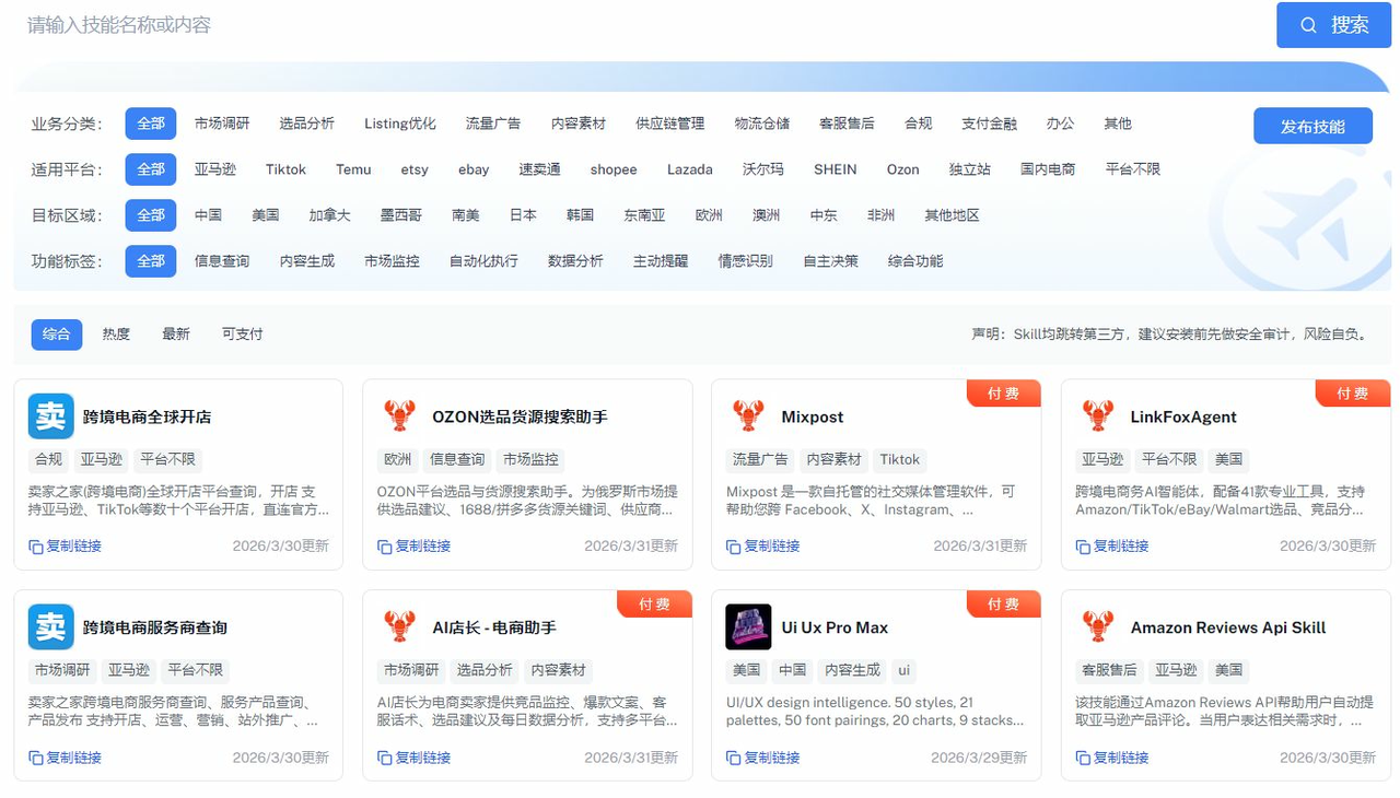 🔗 跨境电商专属技能商城:https://skillhub.mjzj.com/