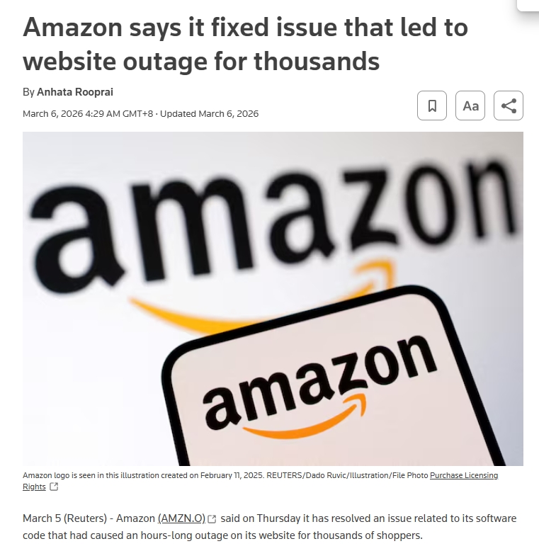 坦白说,有些问题不能装看不见。3 月 5 日,亚马逊美国站就发生过一次较大范围的网站异常,路透报道称,当时故障一度影响到约 22,000 名用户,问题包括结账失败、价格显示异常、订单记录无法访问等,而亚马逊事后确认原因与一次软件代码部署有关。对大促环境来说,这类问题最伤的不是“体验差”三个字,而是买家本来就没那么强的购买意愿,会被系统波动再推走一次。与此同时,卖家论坛里也有参与本届春促的卖家抱怨,活动中途出现 badge 被压、价格要求变化,但费用仍在继续计提。这些问题未必决定大盘一定冷,但它们会让本来就不宽裕的转化空间变得更窄。