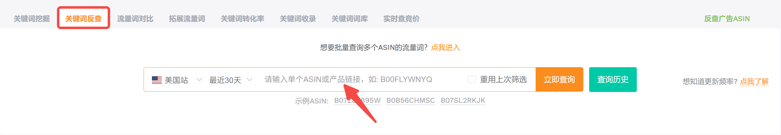 关键词反查拓展: 使用卖家精灵的【关键词反查】功能,分析表现优秀的竞品ASIN,查看哪些高搜索量、高相关性但您尚未覆盖的关键词为它们带来了流量。将这些词添加到您的广告活动中,进一步扩大流量覆盖面。
