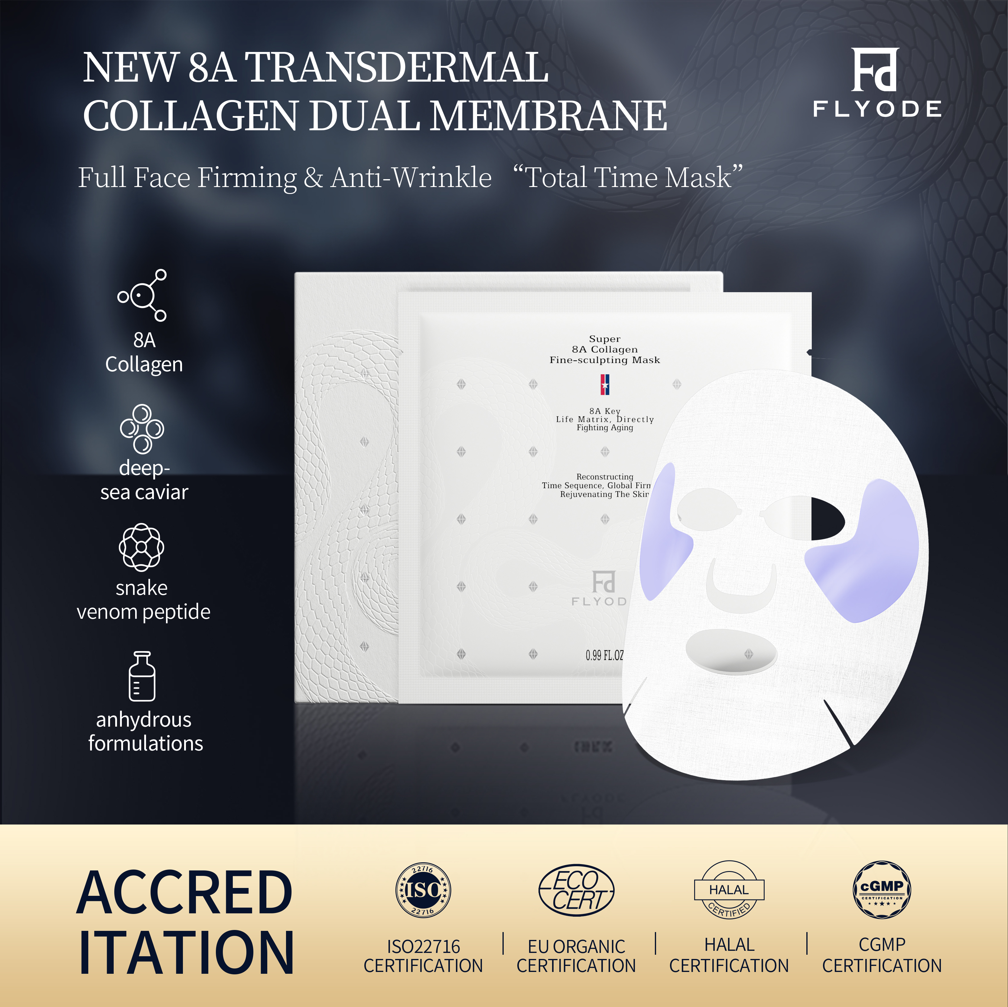 >Flyode Super 8A 胶原蛋白细腻塑形面膜 5片/盒 *3盒