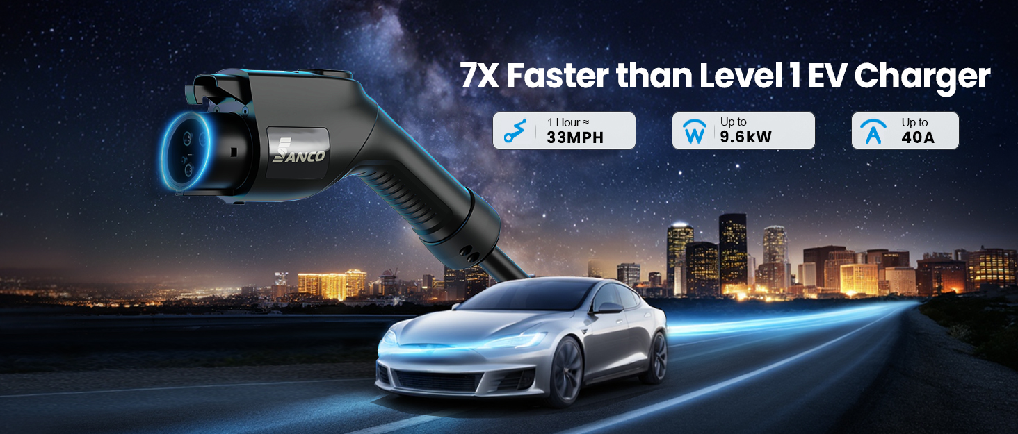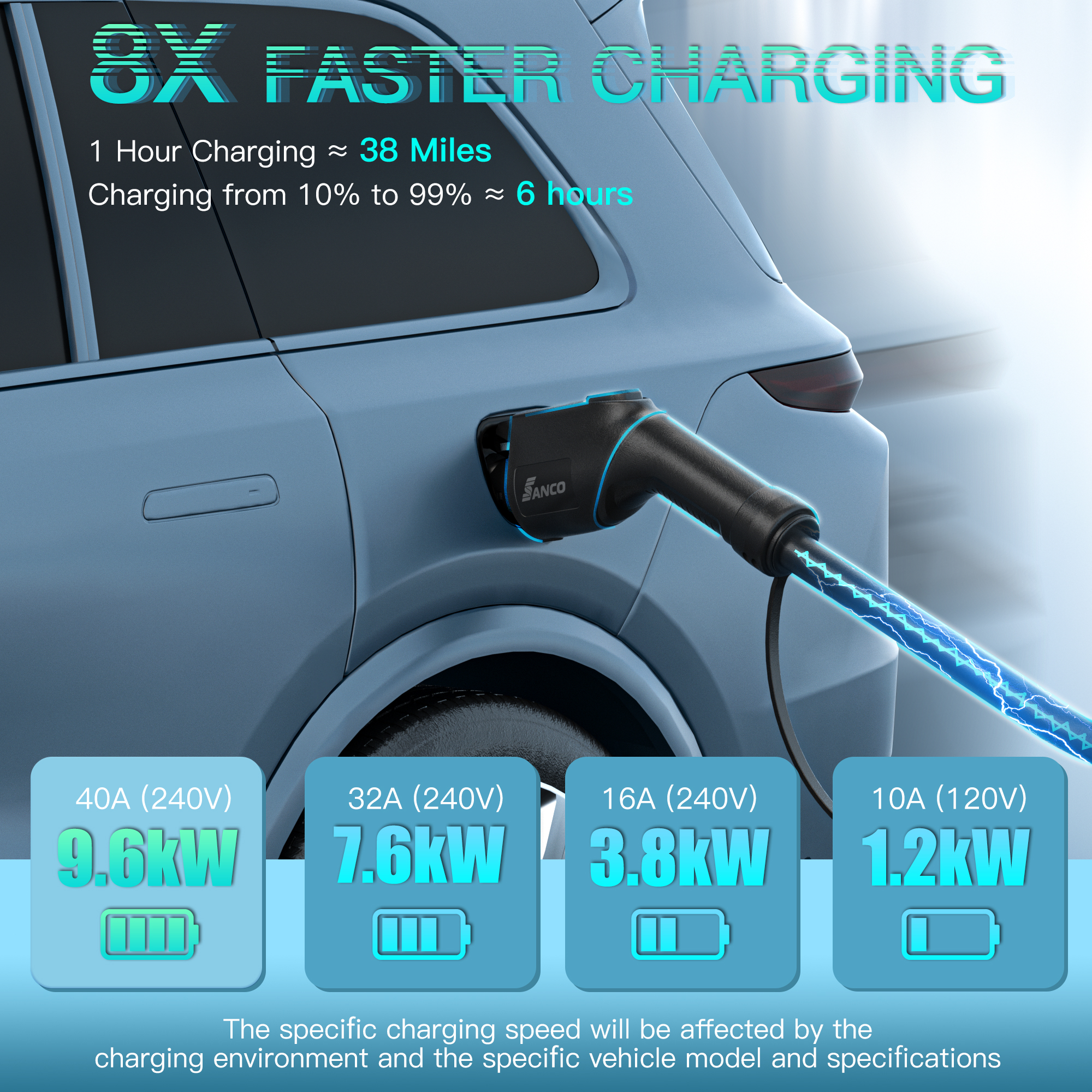 Level 2 EV Charger J1772 Fast Charging EV Chargers for Home 40A Smart Display Electric Car Charger